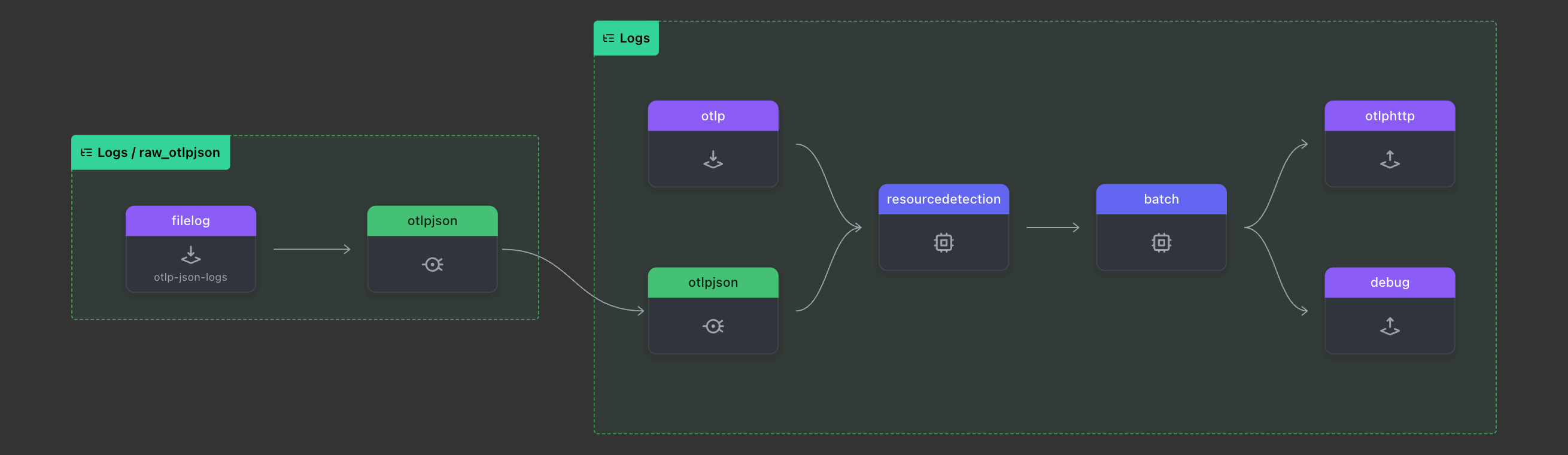receivers: [filelog/otlp-json-logs]